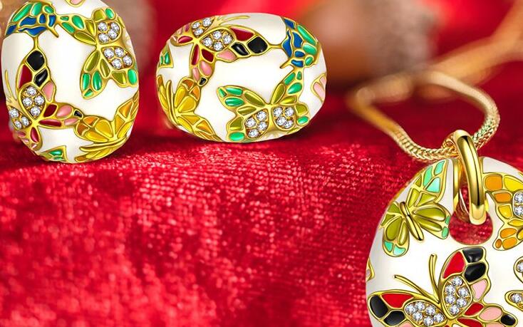 Set Perhiasan Berlian Enamel Perak 925 dan Emas 14K Grosir ini dibuat dengan tangan oleh produsen perhiasan JINGYING. Cocok untuk berbagai macam acara: