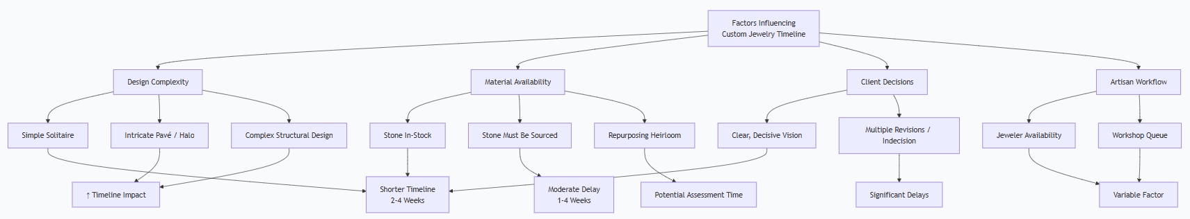 - Artisan Workflow: Reputable jewelers are often booked weeks or months in advance. Their production schedule will impact your start date.