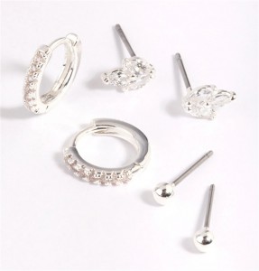 Silver Plated Cubic Zirconia Leaf Earring Stack Pack china jewelry wholesale, , , , Silver Plated Cubic Zirconia Leaf Earring Stack Pack china jewelry wholesale,